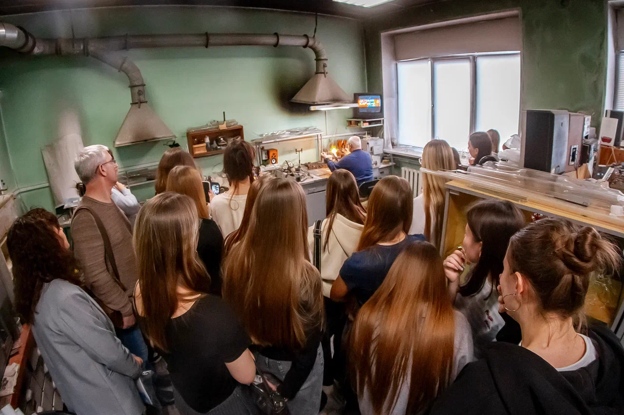 Наверняка учащимся запомнится и посещение стеклодувной мастерской института, где ее заведующий Дмитрий Балашов «на глазах у ребят творил настоящее волшебство, создавая из стекла художественные произведения».