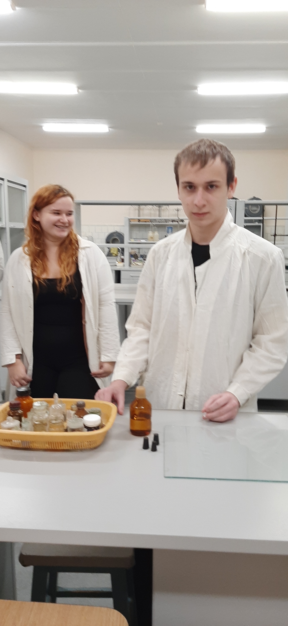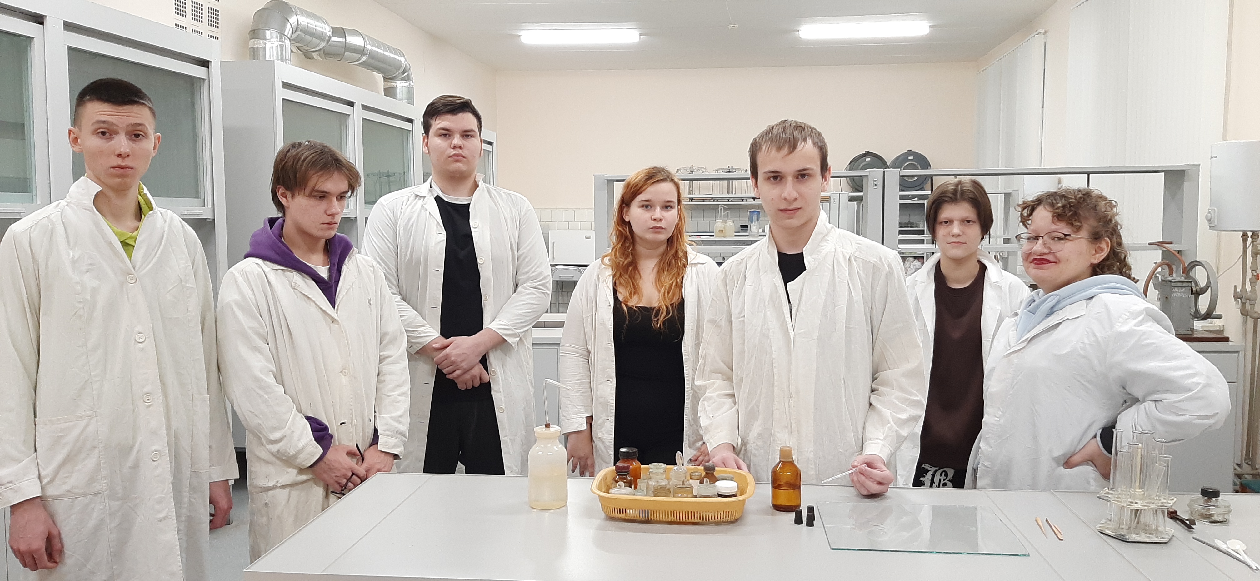 Девятиклассники за неполные два месяца успели погрузиться в изучение таких тем, как «Кислоты и основания. Кислотно-основное титрование», «Типы реакций, условия протекания. Гидроксиды. Сульфаты». В настоящий момент школьники под чутким руководством заведующей лабораторией кафедры «Химические и пищевые технологии» (ХПТ) Ирины Олеговны Лебедевой изучают свойства комплексных соединений.