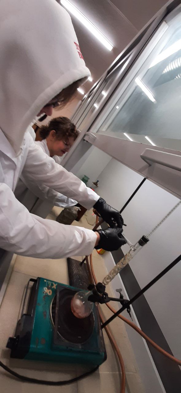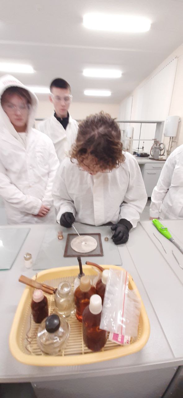 Учащиеся 10-х классов за осенний период продвинулись в изучении качественных реакций на основные классы органических соединений, увлеченно разбирались в классификация органических реакций, занимались разделением смеси (н-гексан и н-бутанол) методом фракционной перегонки. Большой интерес у ребят вызвала и тема «Газовая хроматография органических соединений».