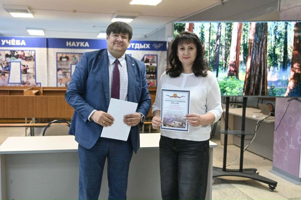 Благодарственными письмами администрации города Дзержинска - Владимир Львович Краснов и Наталья Алексеевна Нажимова, доценты кафедры АЭМИС; Андрей Александрович Кокорев, старший преподаватель кафедры АЭМИС; Елена Николаевна Сажина, доцент кафедры ХПТ; Ольга Евгеньевна Лавыгина, специалист по кадрам отдела кадров и делопроизводства; Лариса Владимировна Баташева, ведущий инженер кафедры ТОТС.